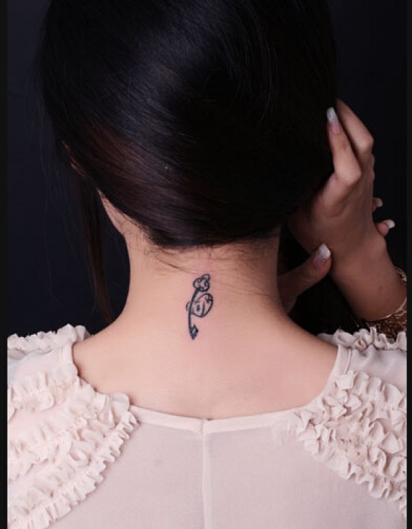 后颈部纹身小图--9张女生脖子后颈处的简约纹身图案