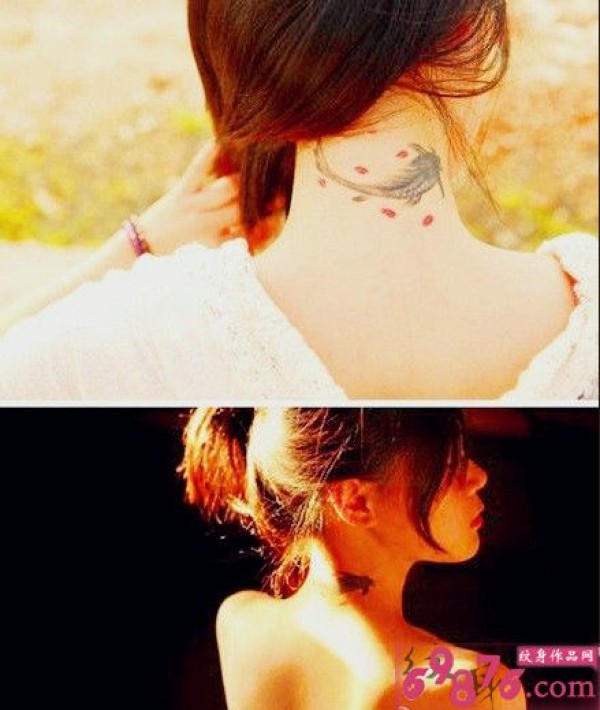 后颈部纹身小图--9张女生脖子后颈处的简约纹身图案