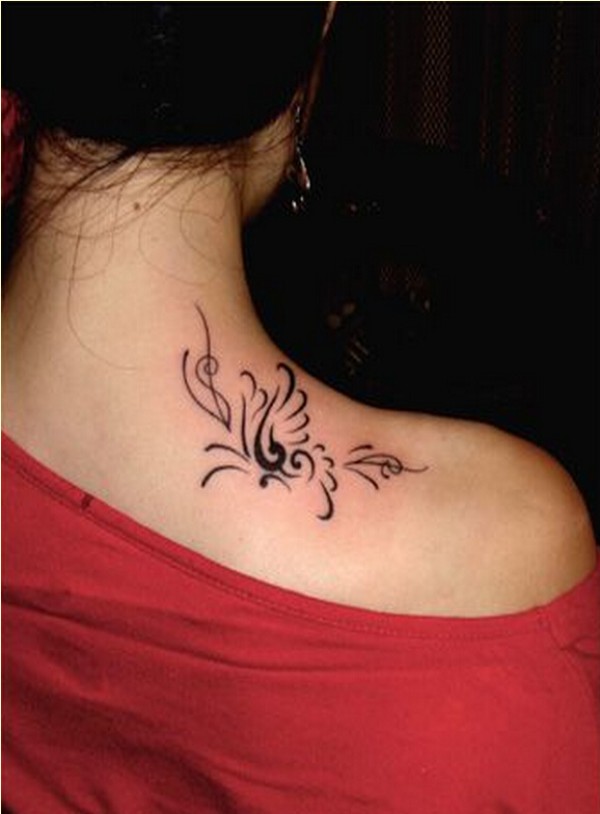 经典时尚颈部漂亮好看的蝴蝶图腾纹身图片
