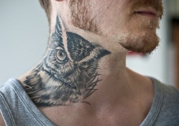 个性男生脖子时尚好看的猫头鹰纹身图图片