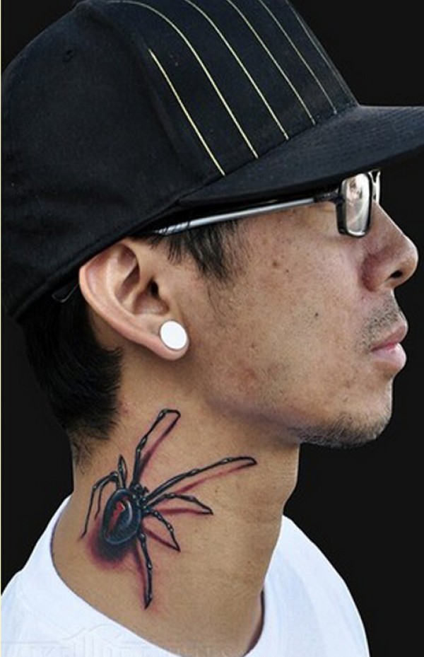 帅哥脖子上逼真的蜘蛛纹身图案欣赏图片