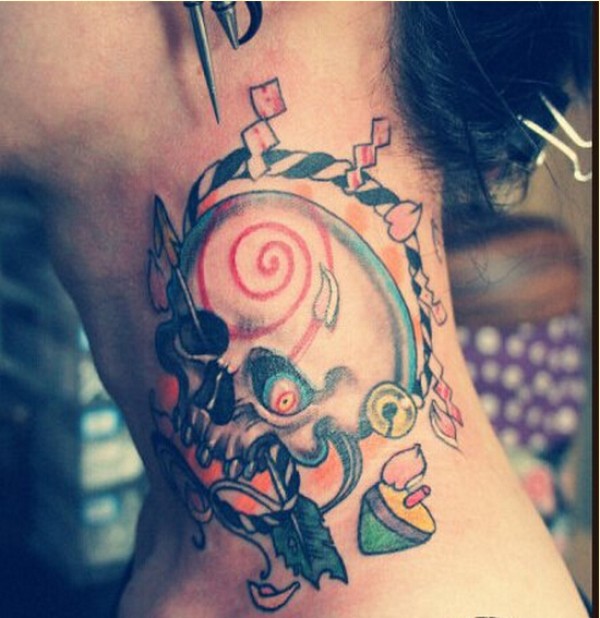 侧腰女骷髅刺青图案图片_骷髅纹身图案大全_纹身图吧