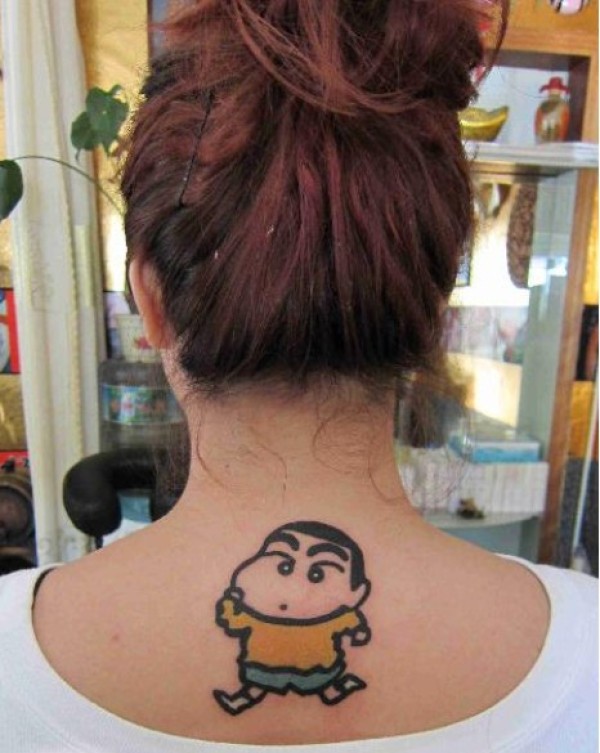 时尚女生脖子可爱好看的蜡笔小新纹身图片
