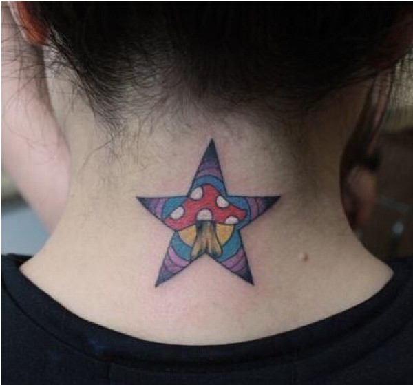 女性颈部唯美时尚的彩色五角星纹身图图片