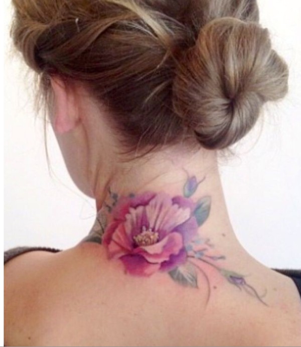 个性时尚的脖子上的花朵纹身
