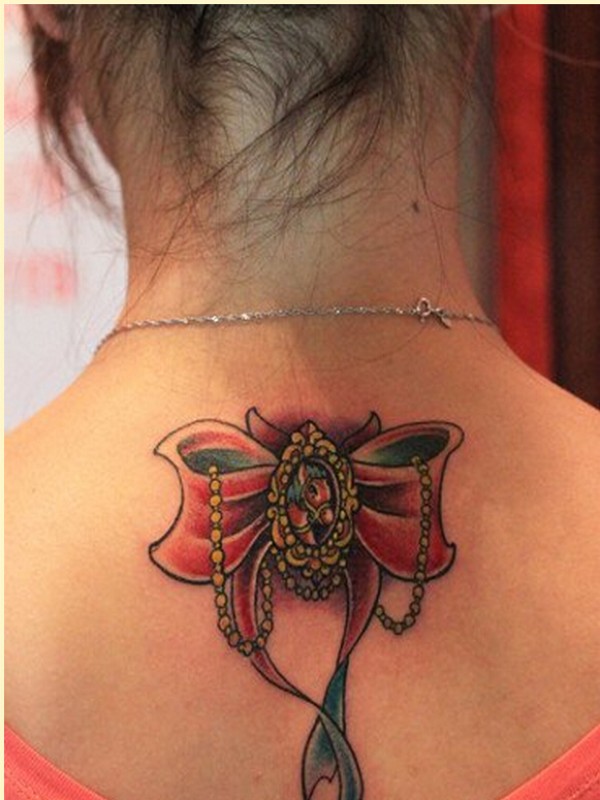 女生脖子时尚好看的彩色蝴蝶结纹身图图片