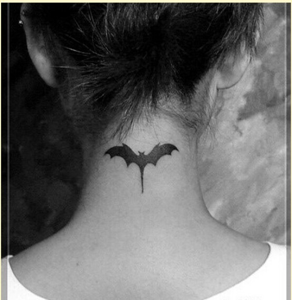 颈部漂亮蝙蝠纹身图案欣赏图片