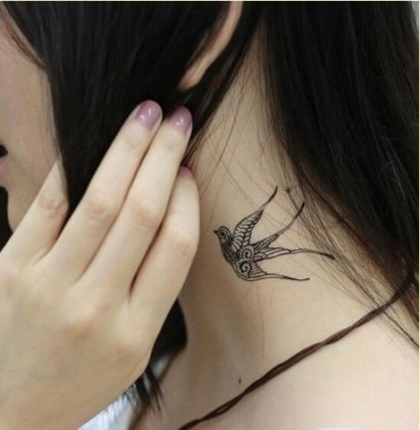 后颈部纹身小图--9张女生脖子后颈处的简约纹身图案
