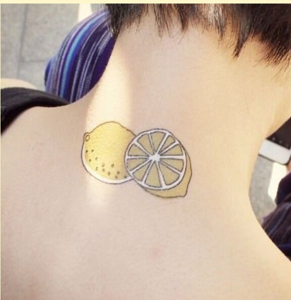 女生脖子时尚好看的柠檬纹身图案