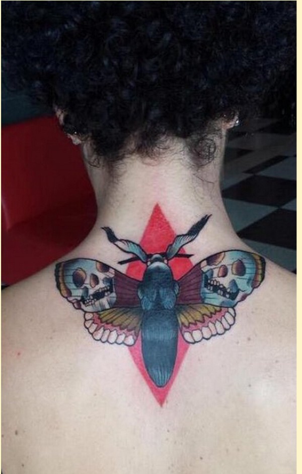 时尚女生脖子个性骷髅蛾子纹身图案推图片