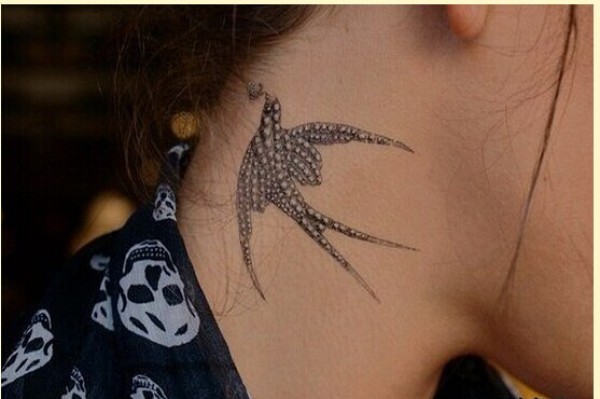 男人脖子彩色燕子刺青图案图片_脖子纹身图案大全_纹身图吧