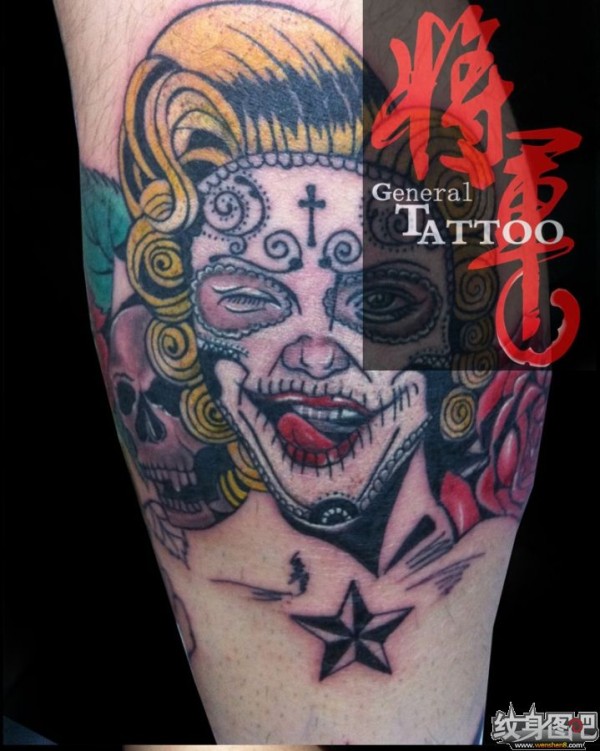 欧美school暗黑系女郎纹身图案手稿