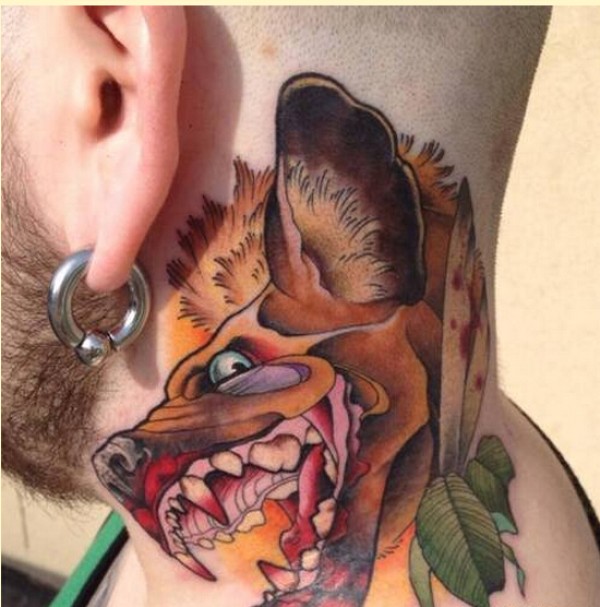 个性时尚脖子彩色狗狗纹身图案分享图片