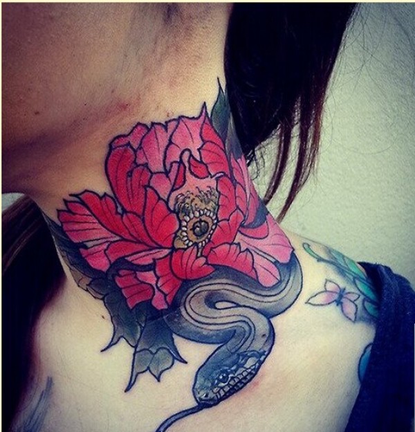 个性时尚的脖子上的花朵纹身