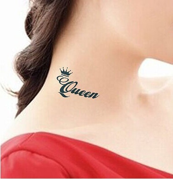 清纯女生脖子唯美清新英文皇冠纹身 图片