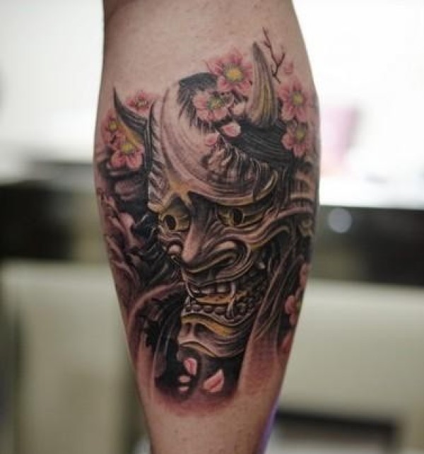 超酷的腿部般若纹身