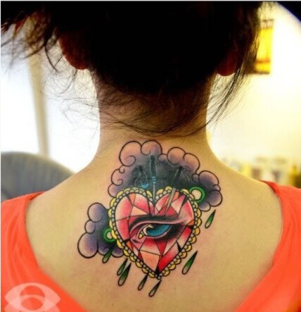后颈部纹身小图--9张女生脖子后颈处的简约纹身图案