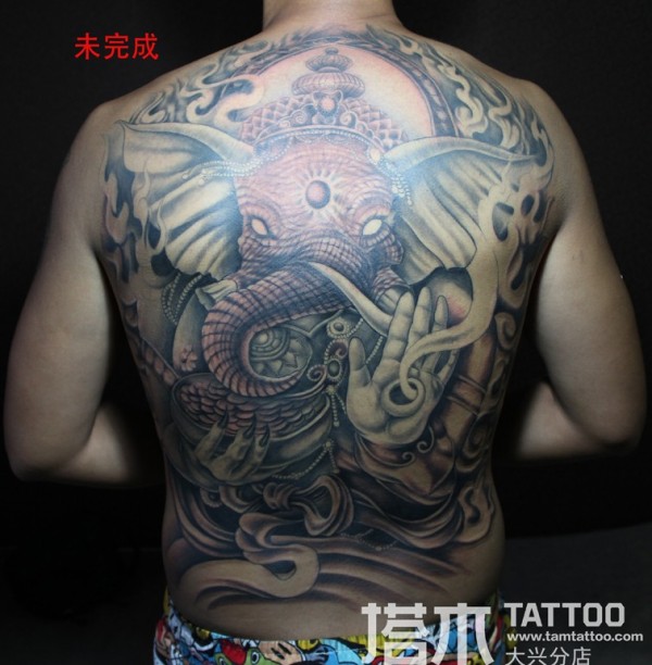 满背象神纹身未完成