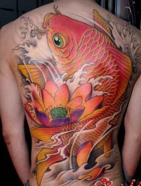 个性经典的满背鲤鱼纹身