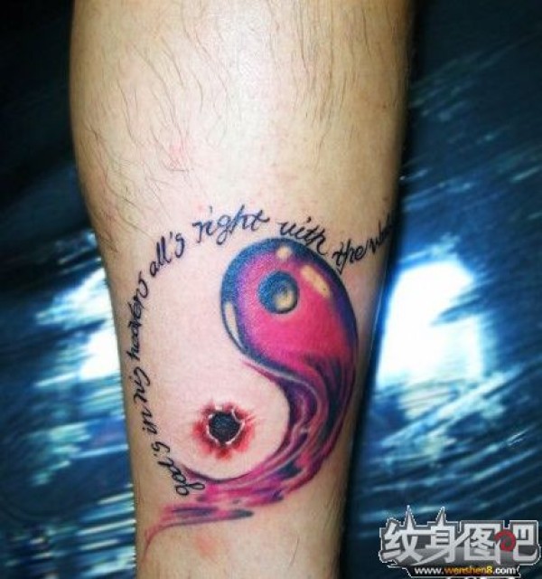 彩色太极和英文纹身图案