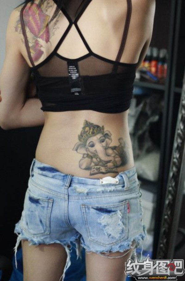 女性腰部莲花花纹刺青_腰部纹身图案大全_纹身图吧
