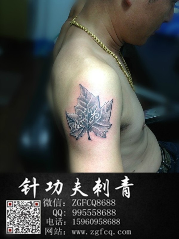 大臂个性的枫叶纹身