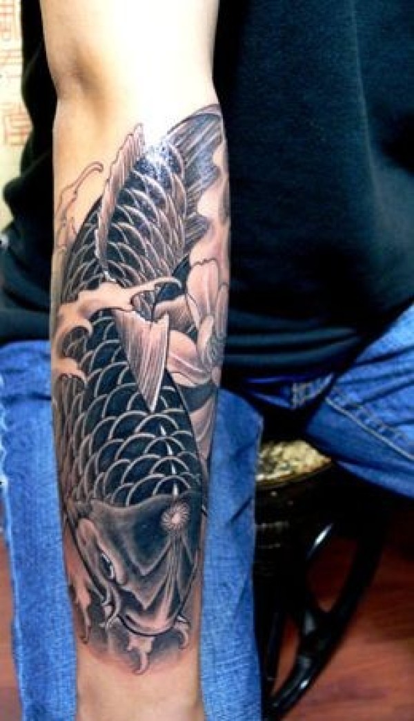 小臂上帅气的鲤鱼纹身