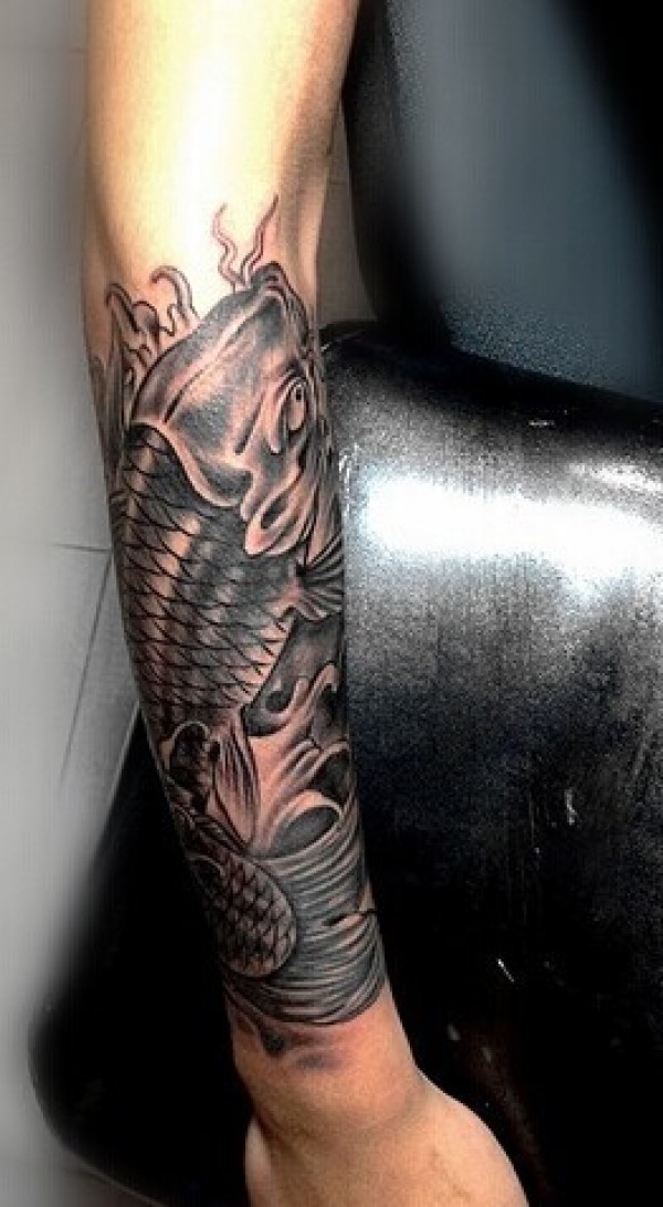 小臂上帅气的鲤鱼纹身