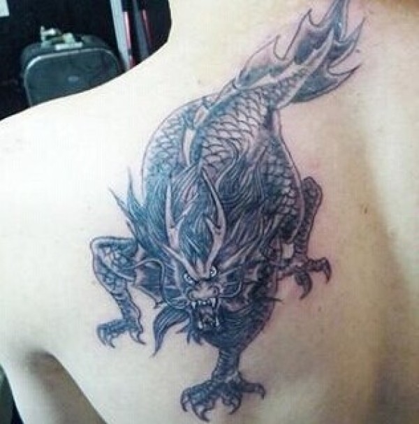龙纹身手稿_一组老传统黑灰龙手稿纹身图案