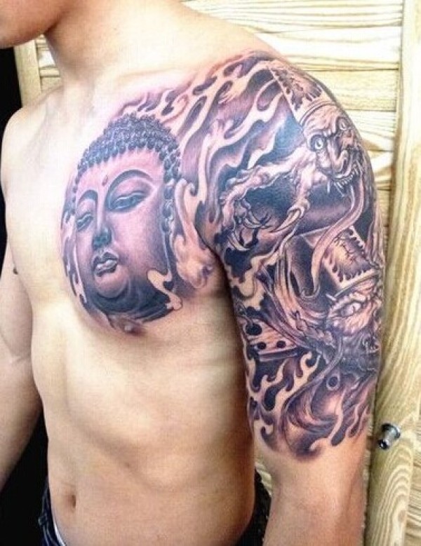 传统个性的佛头半甲纹身