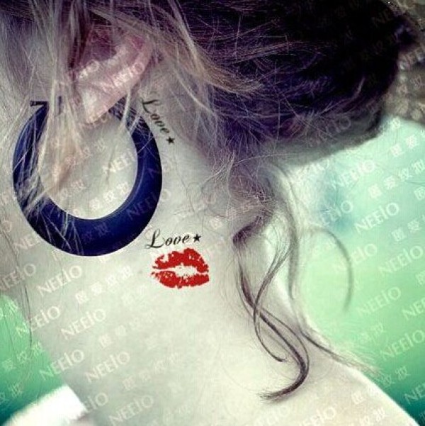性感唇印 字母颈部纹身图片
