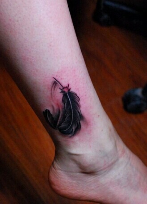 脚踝羽毛文身作品