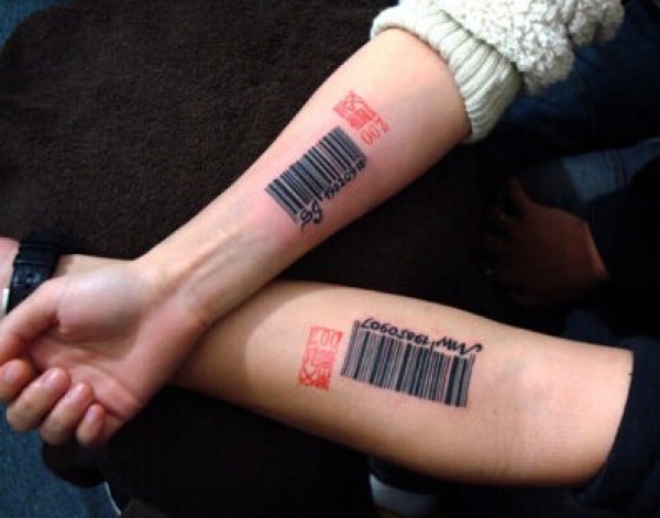 情侣小臂个性的二维码纹身