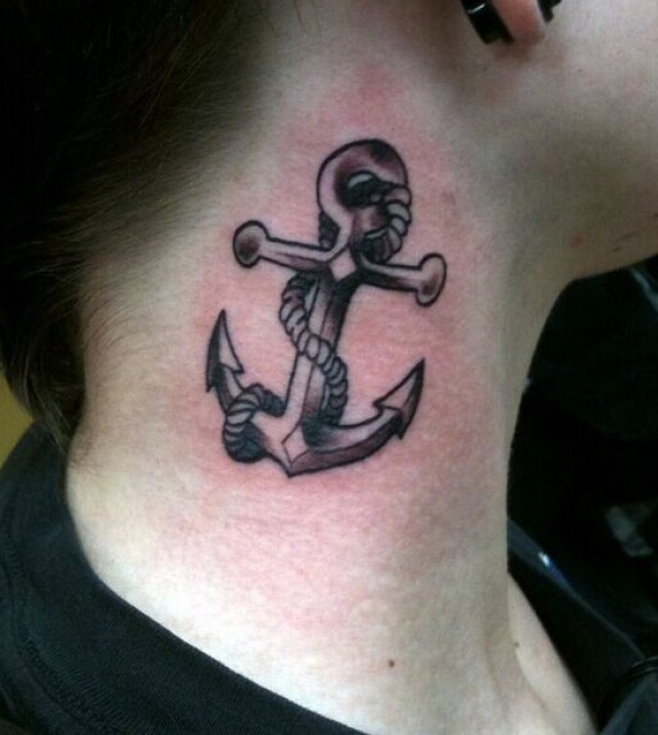 彰显个性的船锚脖子部位纹身图片