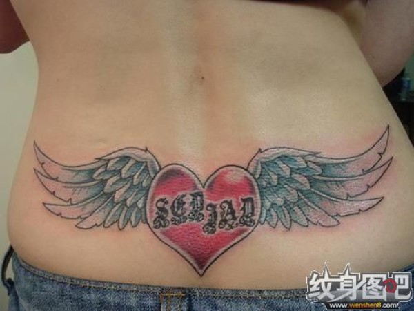 腰部长着翅膀的心脏纹身图案