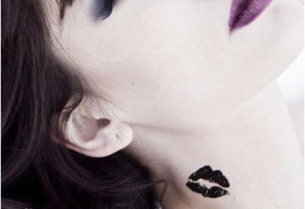 性感MM脖子个性唇印纹身