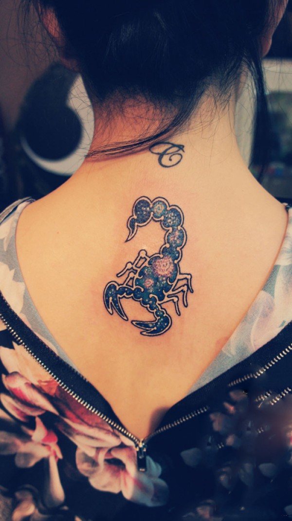 美女后颈创意星空蝎子纹身图片