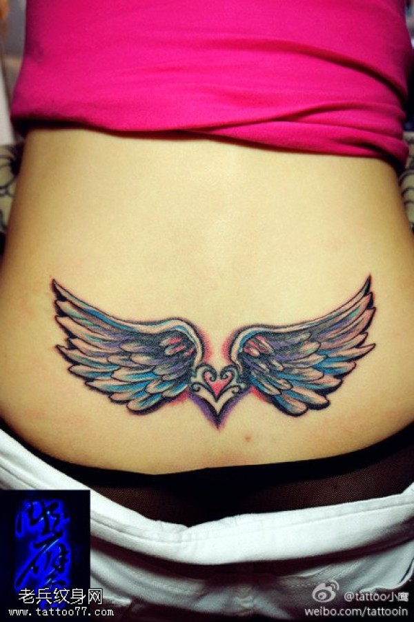 腰部个性彩色翅膀纹身图案