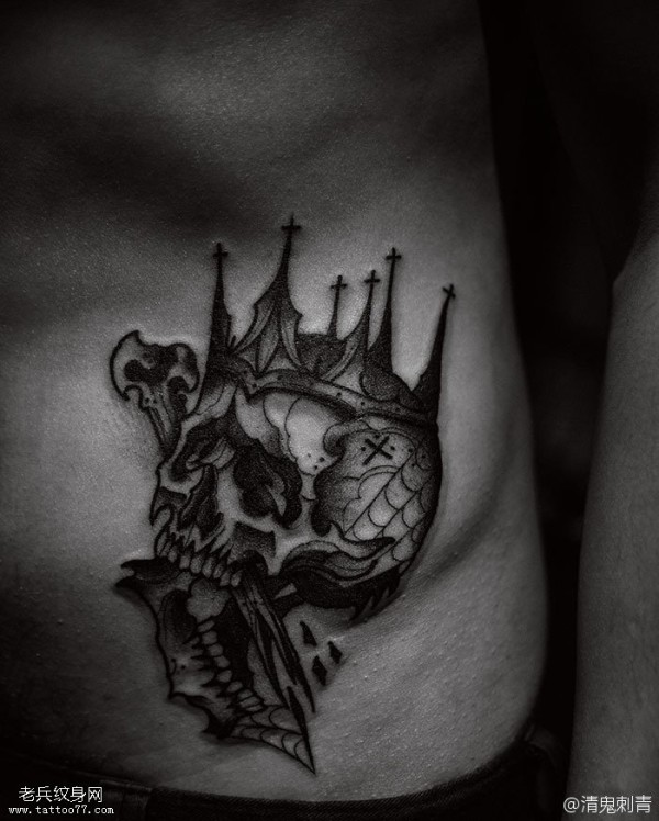 侧腰女骷髅刺青图案图片_骷髅纹身图案大全_纹身图吧
