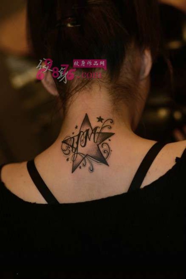 后颈部纹身小图--9张女生脖子后颈处的简约纹身图案