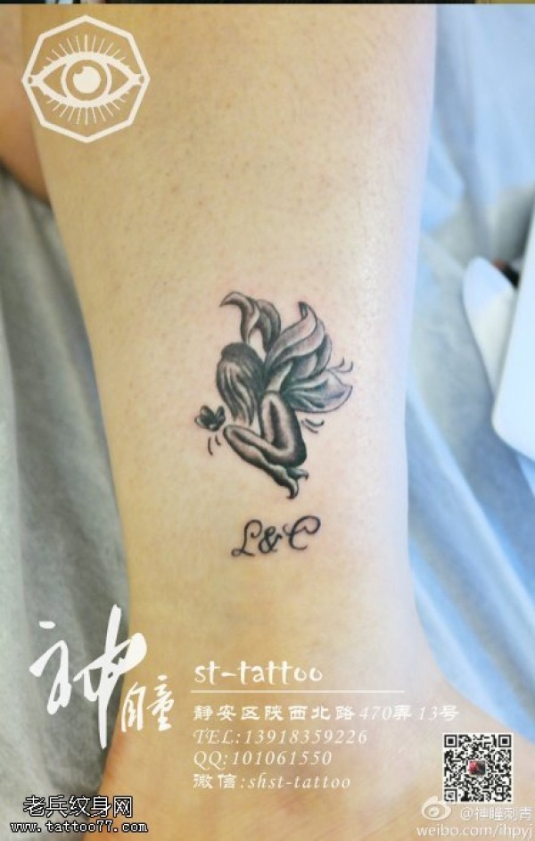 脚踝小清新小天使纹身图案