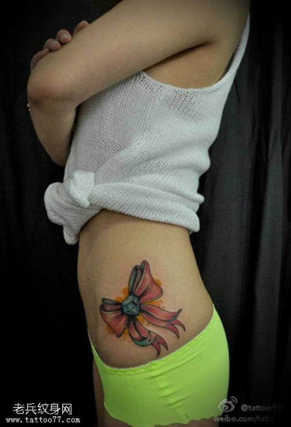 分享一款腰部时尚性感的蝶恋花纹身图案_腰部纹身图案大全_纹身图吧
