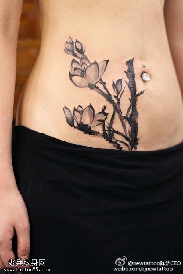 女性腰部莲花花纹刺青_腰部纹身图案大全_纹身图吧