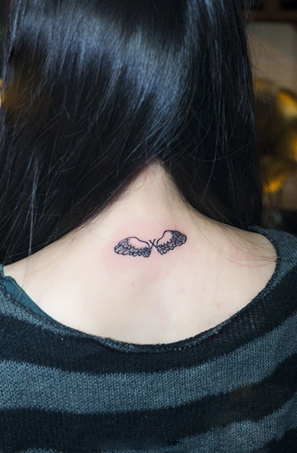 后颈部纹身小图--9张女生脖子后颈处的简约纹身图案
