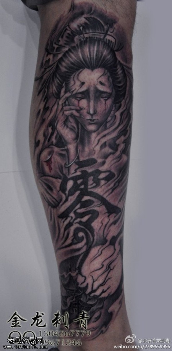 小腿艺妓纹身图案