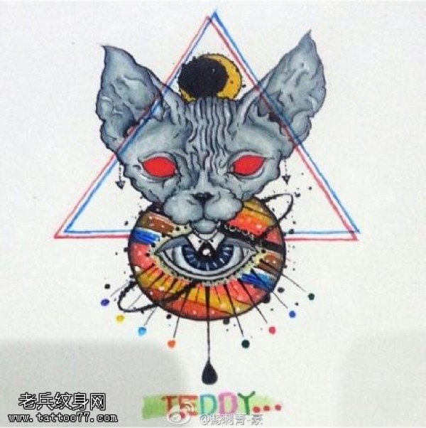 三角眼猫咪纹身手稿图案