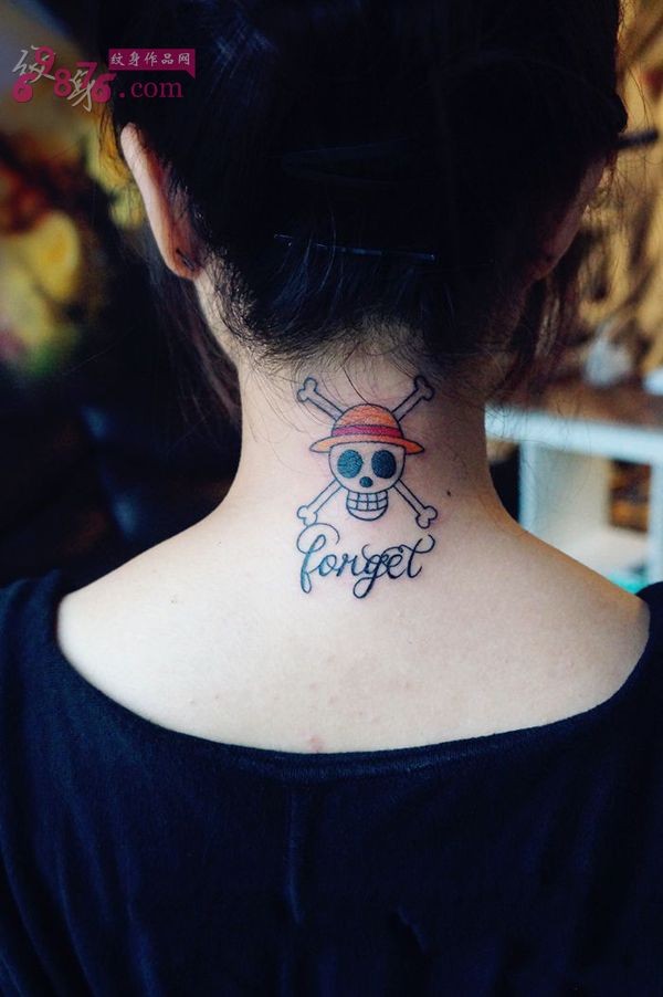 可爱海盗骷髅脖子纹身图片