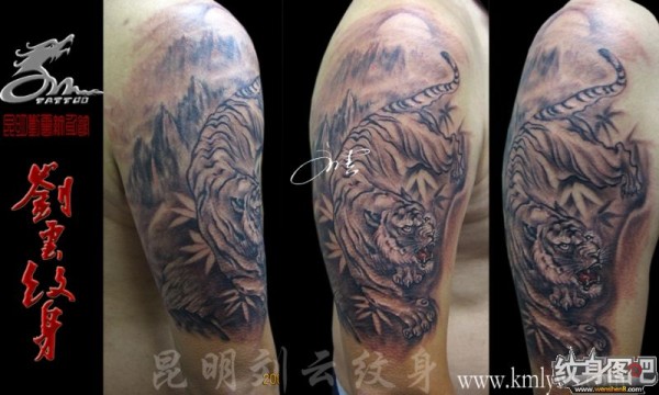 霸气半胛老虎纹身_动物纹身图案大全_纹身图吧