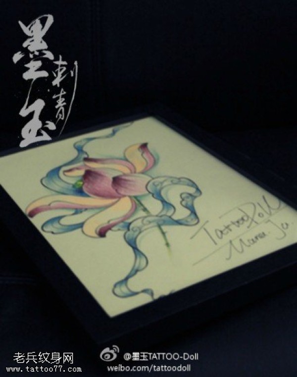 彩色个性莲花纹身手稿图片