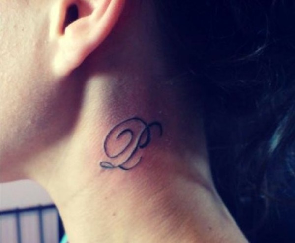 女孩P符号脖子纹身图片
